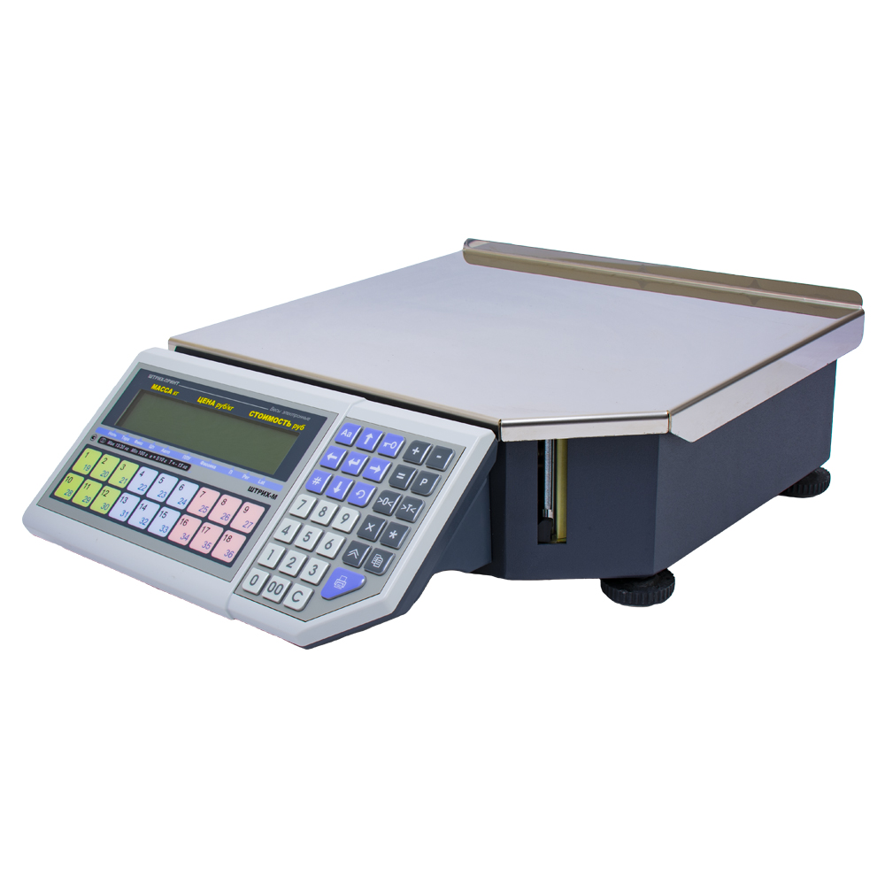 "ШТРИХ-ПРИНТ" ФI v.4.5 – удобные фасовочные весы с печатью этикетки в привлекательном обновлённом дизайне. Клавиатура весов и дисплей оператора с целью эргономики размещены внизу, так что оператору удобно вводить номер PLU или код товара (дисплей покупателя отсутствует за ненадобностью). Эти недорогие весы могут использоваться в подсобных помещениях торгового объекта (например, в мясных, салатных и кулинарных цехах) для предварительной фасовки товара и нанесения этикеток на расфасованный товар, а также для фасовки непосредственно в торговом зале.