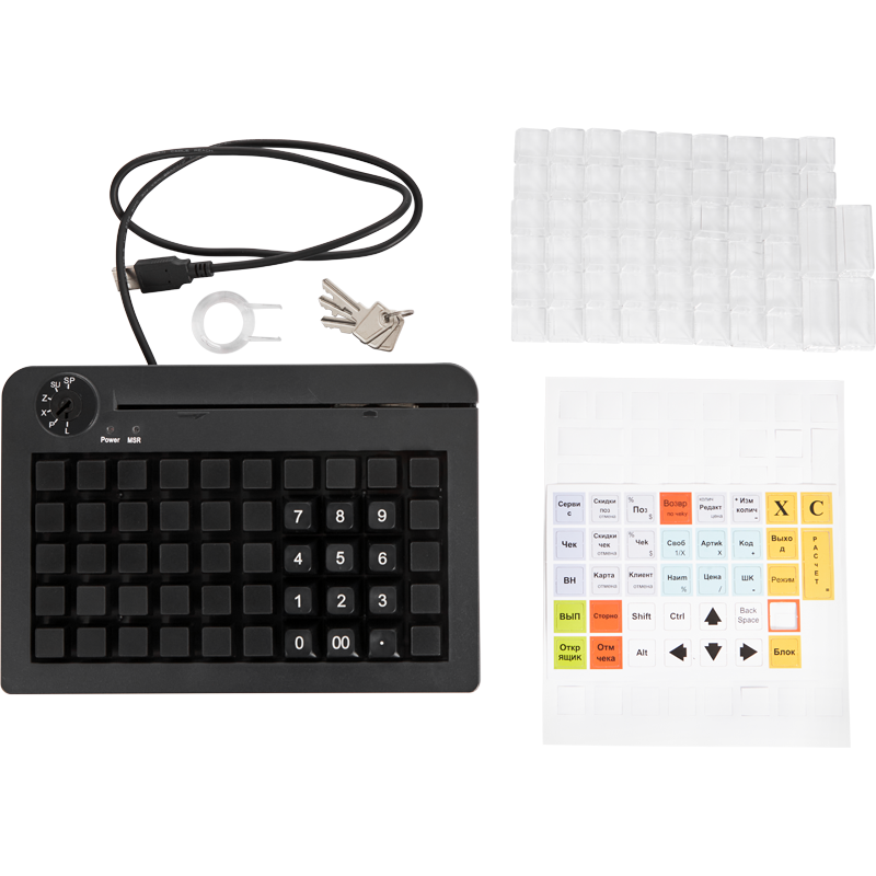 Клавиатура предназначена для выполнения широкого спектра кассовых операций. Имеет 50 программируемых клавиш и встроенный считыватель магнитных карт. Подключается по USB, совместима с большинством современных ПК и большинством операционных систем, таких как Windows ME/ 9X/2K/ XP/ 7, DOS и Linux и другими, а также со всеми популярными кассовыми ПО. Есть возможность подключения сервисной Windows-клавиатуры при необходимости оперативной настройки.Благодаря наличию встроенной в основание металлической пластины POS-клавиатура PayTor KB-50 защищена от статического электричества. Оснащена электронным 6-позиционным замком. Ресурс клавиш рассчитан на 10 000 000 нажатий.