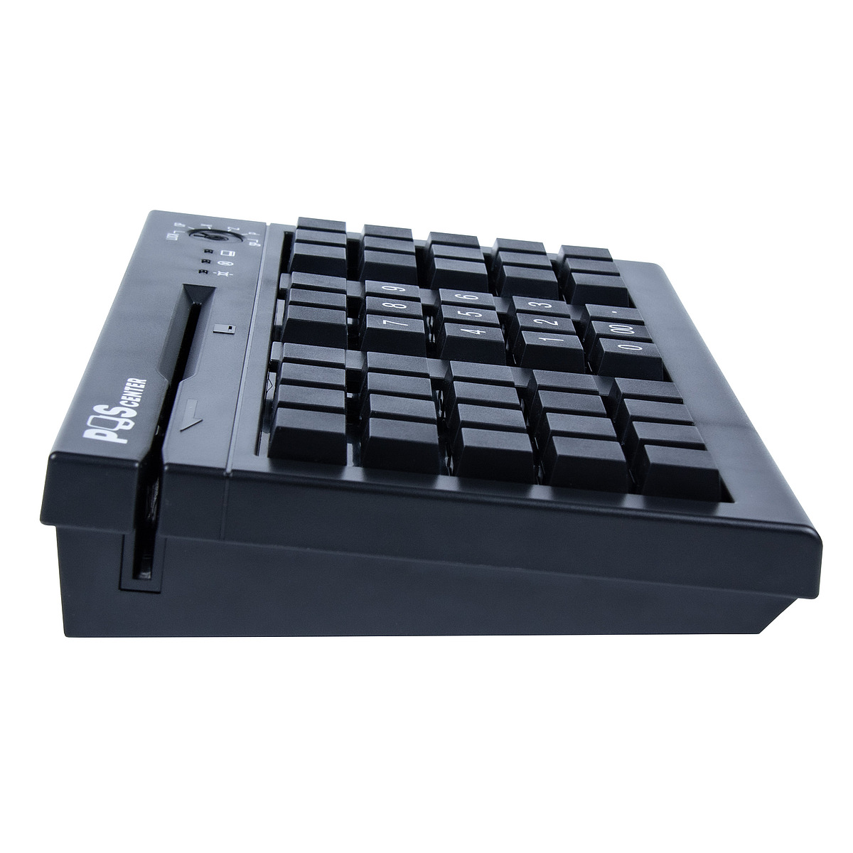 S50A – компактная многофункциональная программируемая POS-клавиатура со встроенным считывателем магнитных карт и 6-позиционным замком для различного уровня доступа пользователей (администратор, старший кассир, кассир и др.). 50 клавиш мембранного типа обеспечивают удобный и быстрый ввод данных, которые при необходимости можно сохранить в устройстве на срок до 100 лет. Также в комплекте предусмотрены сдвоенные клавиши, прозрачные колпачки для клавиш и съемный кабель USB Type-A - RJ-45 с ферритовым кольцом для синхронизации с устройствами различного типа. Разъёмы для подключения интерфейсного кабеля расположены на задней панели.
