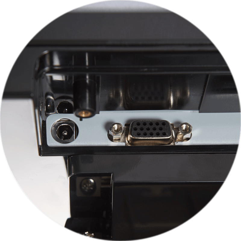 Глянцевые корпус и подставка гармонично дополняют друг друга, при этом подставка не только обеспечивает высокую устойчивость, но и позволяет спрятать провода и обеспечить идеальный порядок на рабочем месте кассира.
