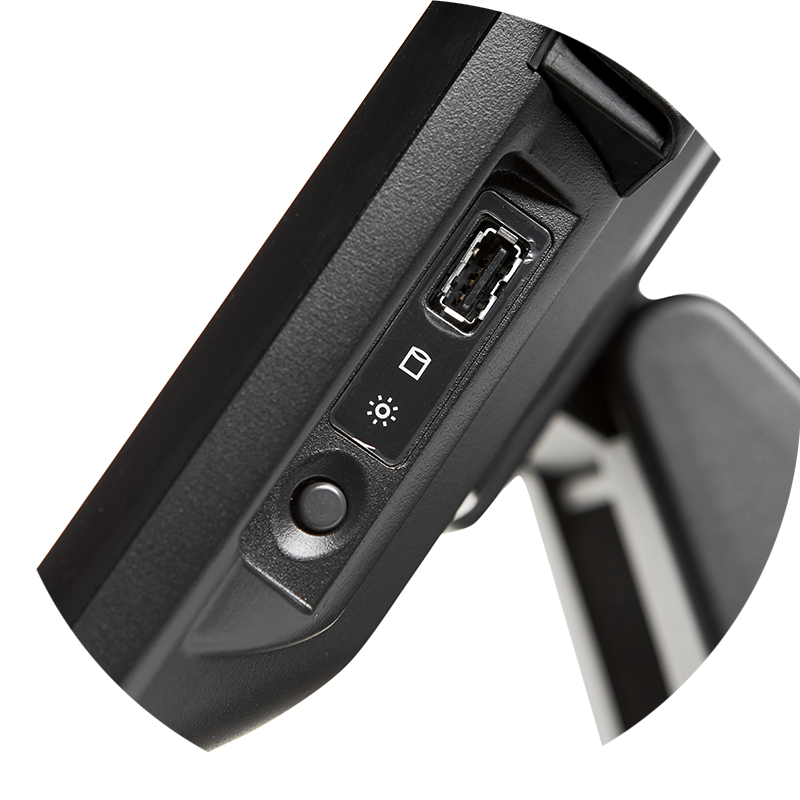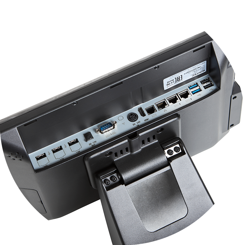 Высокий уровень надежности терминала обеспечивает полностью металлический корпус и водонепроницаемый дисплей. Учитывая отсутствие рамки, случайно пролитую жидкость можно будет легко убрать с поверхности экрана без риска для устройства. Угол наклона дисплея регулируется - его можно изменить, чтобы использовать терминал было удобно на поверхностях разной высоты. Одна из отличительных особенностей данной модели заключается в боковом расположении SSD, что обеспечивает легкий доступ к накопителю и будет по достоинству оценено специалистами, обеспечивающими техническую поддержку на точке.