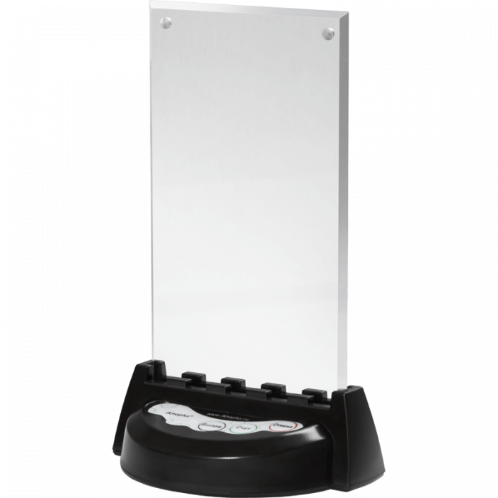 Кнопка оснащена подсветкой, поэтому предназначается для работы в условиях плохого освещения. Панель имеет 3 кнопки, которые дают возможность осуществить вызов и отменить его. Отдельная кнопка предназначается для запроса счета. Главное преимущество устройства в том, что подача сигнала не перебивается из-за помех и передает его с максимальной скоростью.