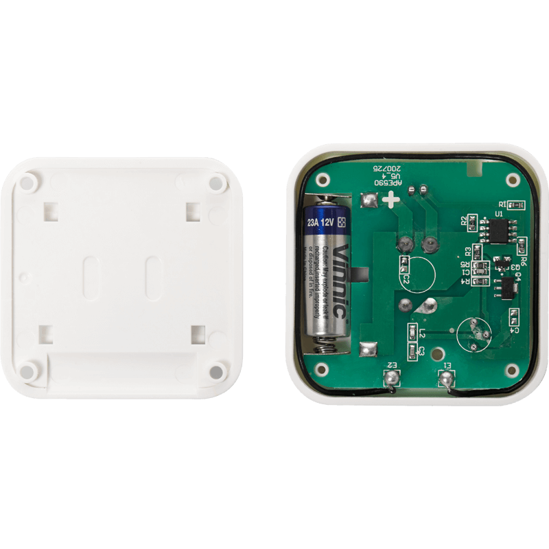 Помимо самой кнопки вызова, стандартная комплектация предусматривает наличие двухстороннего скотча, а также шурупов для крепления на вертикальной и горизонтальной поверхности.