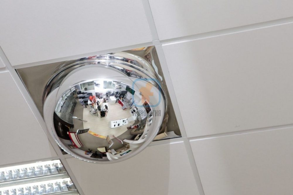 Зеркало купольное «Армстронг» для подвесного потолка 600 мм — это специальное зеркало, которое устанавливается на подвесной потолок типа «Армстронг». Оно имеет купольную форму и обеспечивает угол обзора 180 градусов с любой точки в помещении. Зеркало предназначено для использования в системах безопасности, например, для наблюдения за персоналом в торговых залах.